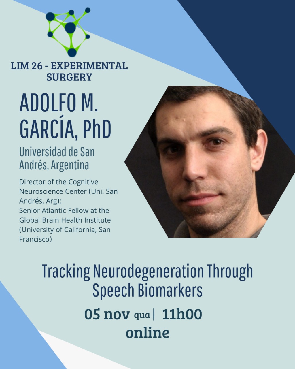 Dr. Adolfo García gave a keynote lecture at the Hospital de Clínicas of the University of São Paulo School of Medicine, where he spoke about speech biomarkers in neurodegeneration.